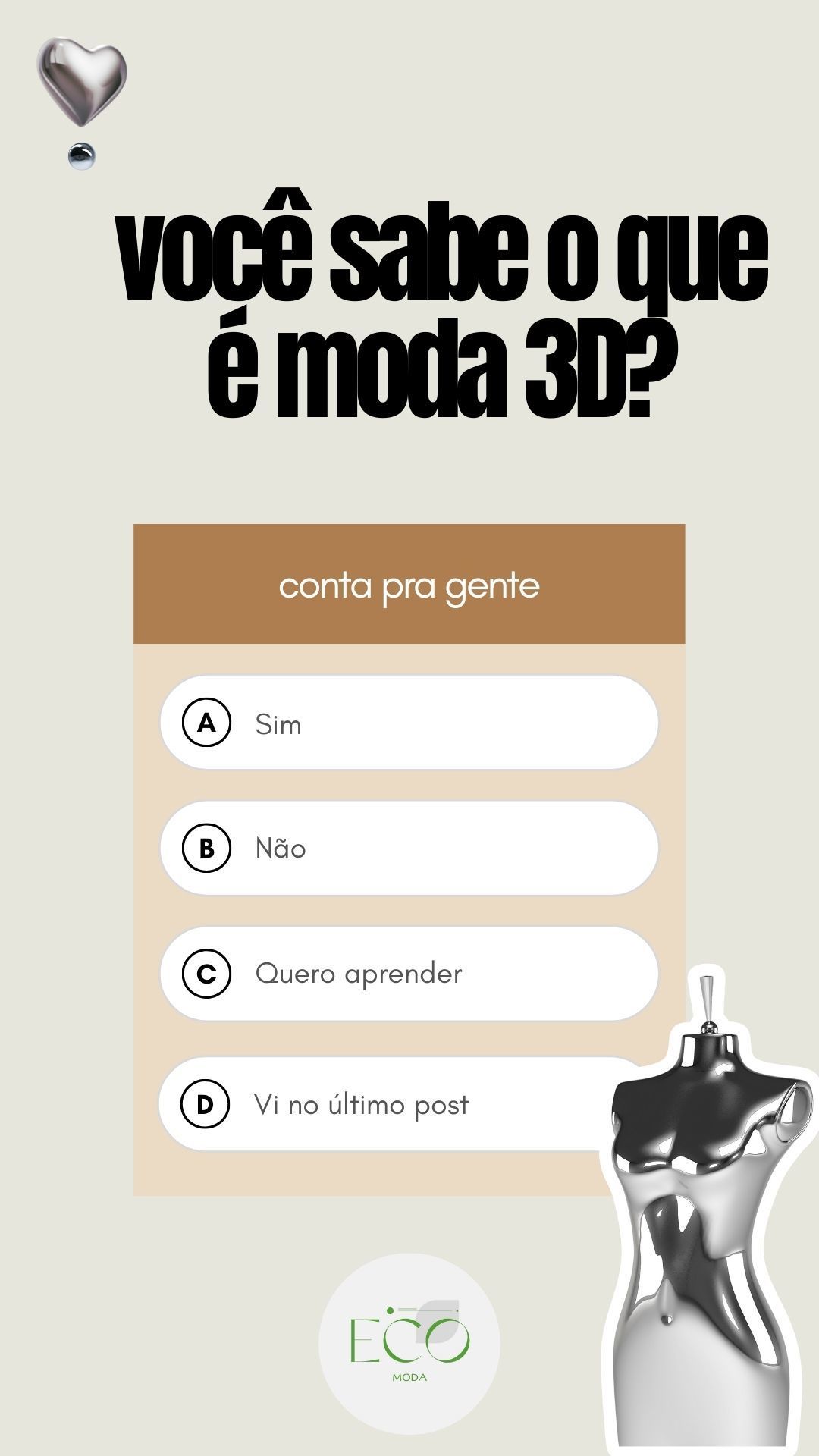 - Twitter: Tweet para engajar a audiência em uma discussão sobre moda sustentável.