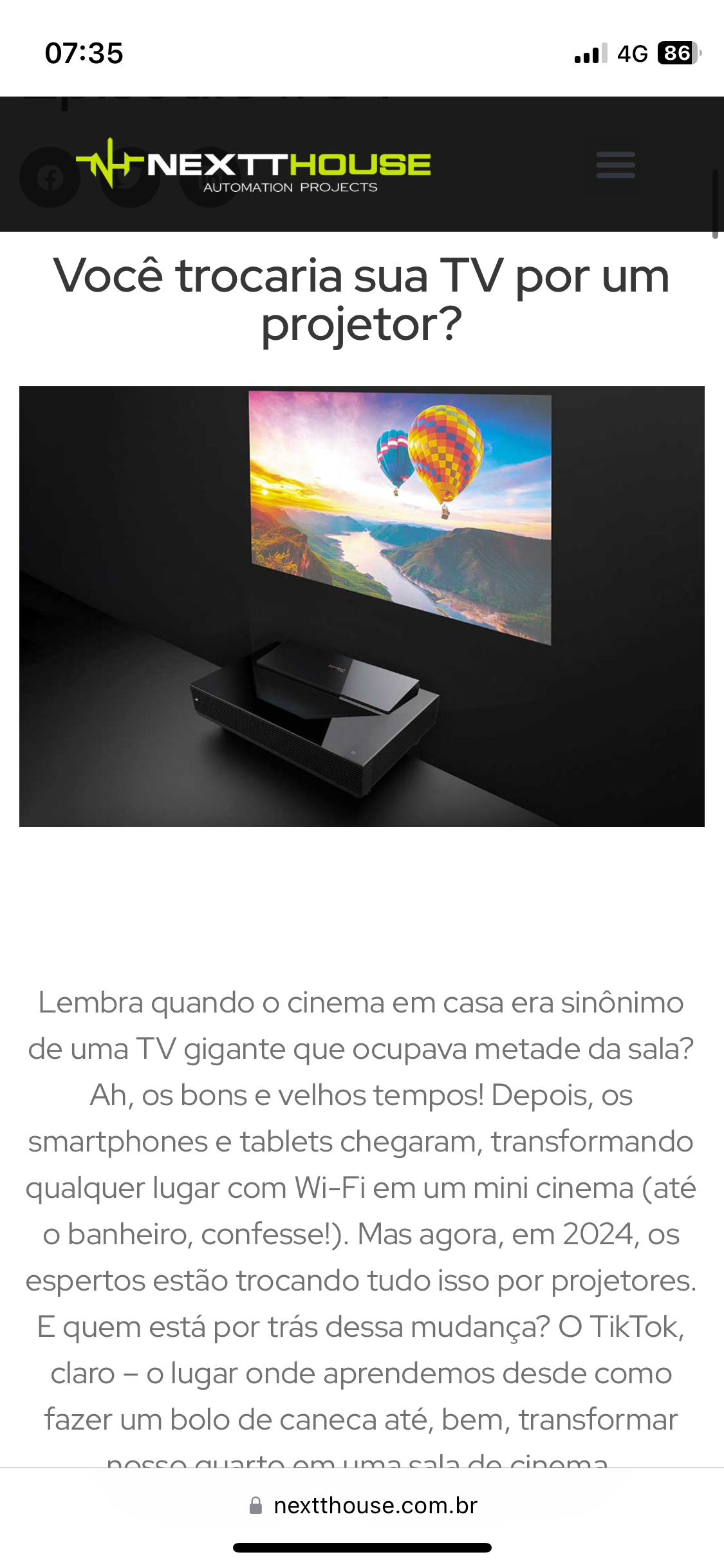 Texto produzido para a empresa NEXTTHOUSE. Leia mais em: https://nextthouse.com.br/voce-trocaria-sua-tv-por-um-projetor/